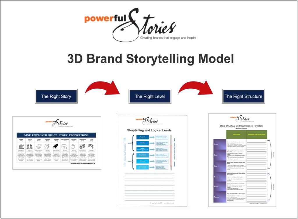 The “Storytelling and Logical Levels” tool will ensure that the stories you select address the deepest and most relevant emotional and psychological triggers in your target audience. This provides a structured and highly practical insight into the persuasive potential of story that lies beyond the reach of conventional employer branding approaches.